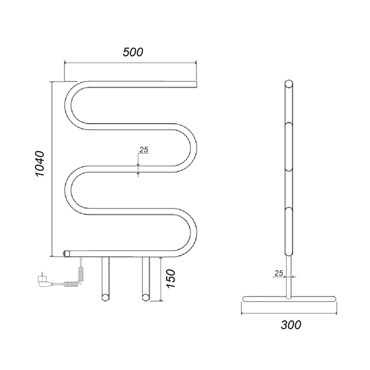 Полотенцесушитель электрический Domoterm E-образный Dmt 103-25 50х104 EK (напольный), хром