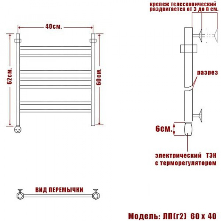Полотенцесушитель Электрический Ника CLASSIC 600х430 хром (ЛП Г2 60/40 прав)