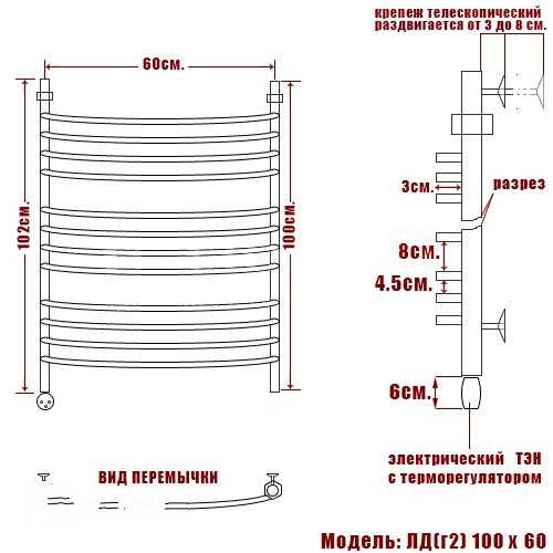 Полотенцесушитель Электрический Ника ARC 1000х630 хром (ЛД Г2 100/60 лев)