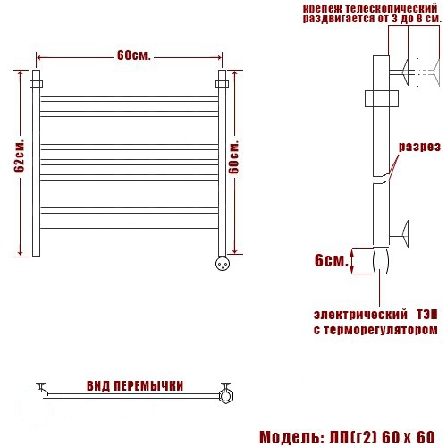 Полотенцесушитель Электрический Ника CLASSIC 600х630 хром (ЛП Г2 60/60 прав)
