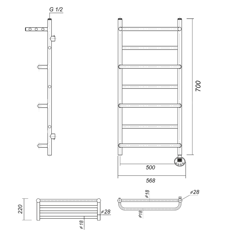 Полотенцесушитель электрический Domoterm Орфей П7 500х700 Абр ER Тен справа, Античная бронза