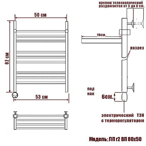 Полотенцесушитель Электрический Ника CLASSIC 800х530 хром (ЛП Г2 ВП 80/50 лев)