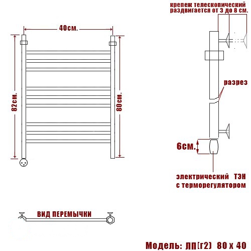 Полотенцесушитель Электрический Ника CLASSIC 800х430 хром (ЛП Г2 80/40 лев)