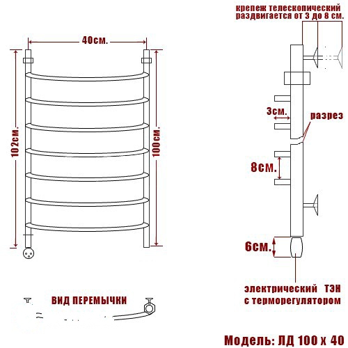 Полотенцесушитель Электрический Ника ARC 1000х430 хром (ЛД 100/40 лев)