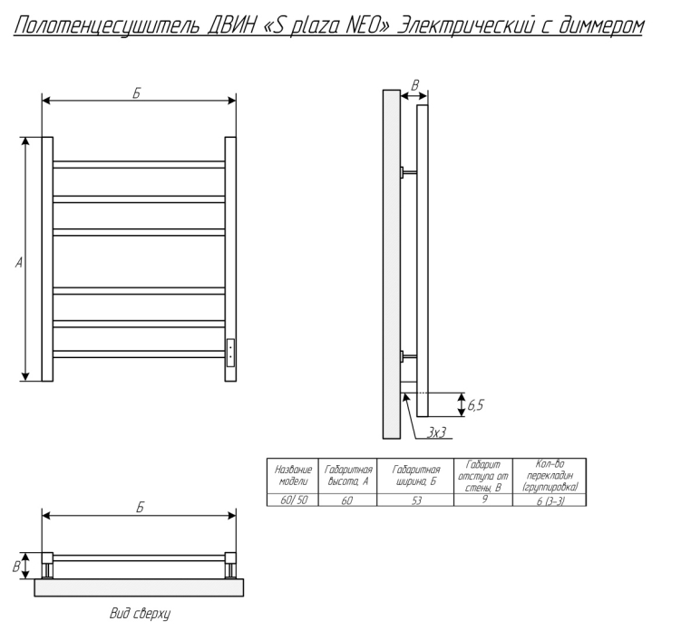 Полотенцесушитель ДВИН S plaza neo 60/50 Электрический (4656759179274)