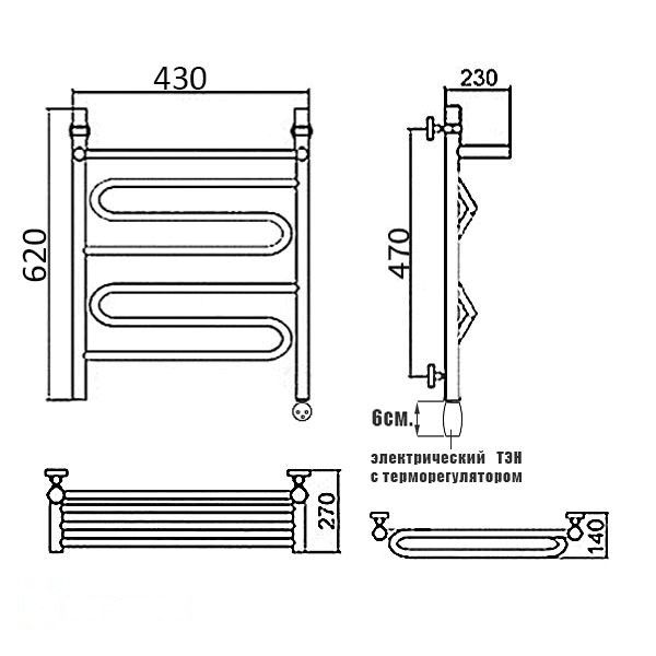 Полотенцесушитель Электрический Ника CURVE 600х430 хром (ЛЗ ВП 60/40 прав)