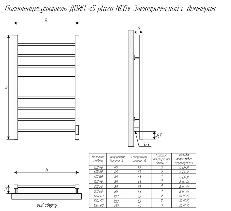 Полотенцесушитель ДВИН S plaza neo 100/60 Электрический (4657763840341)