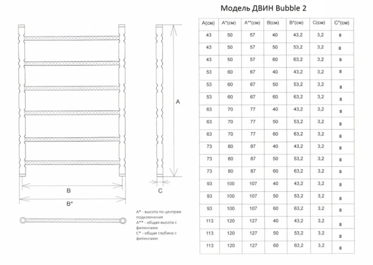 Полотенцесушитель Двин Bubble 2 electro 100/60 1"-1/2" Электрический ТЭН справа К эл, Полированный (4627152137918)