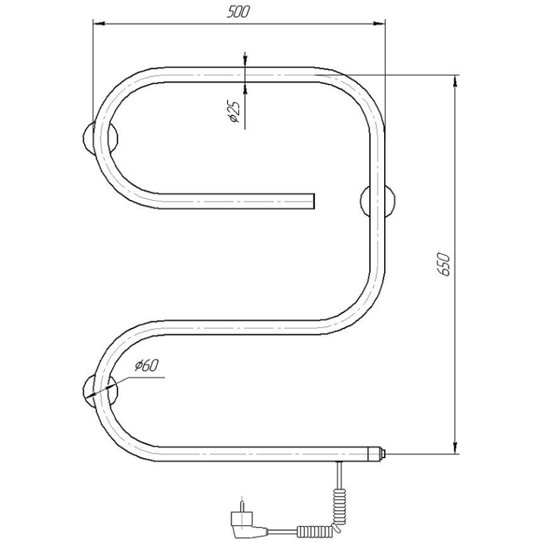 Полотенцесушитель электрический Domoterm E-образный Dmt 105-25 50х65 EK R Тен справа, хром