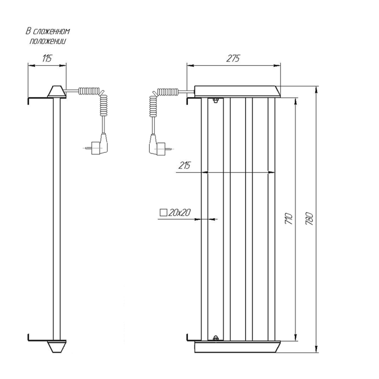 Полотенцесушитель электрический Domoterm Полка Dmt 73 25х83 EK R Тен справа, хром