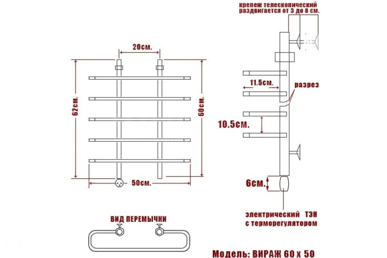 Полотенцесушитель Электрический Ника MIX 600х530 хром (Вираж 60/50 лев)