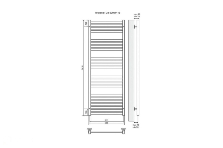 - Межосевое расстояние полотенцесушителя, мм: 500