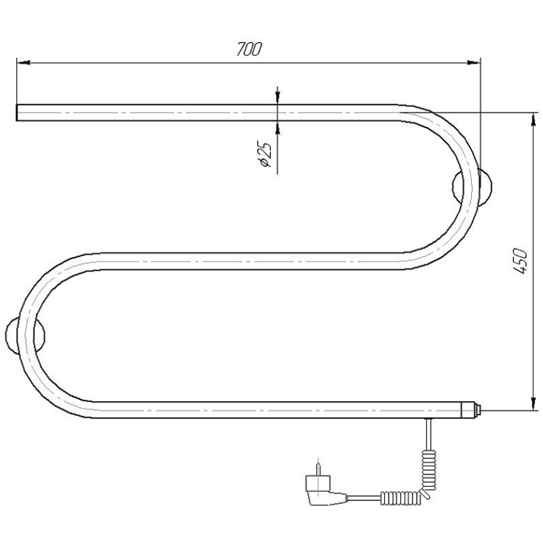 Полотенцесушитель электрический Domoterm S-образный Dmt 112 42х70 EK R Тен справа, хром