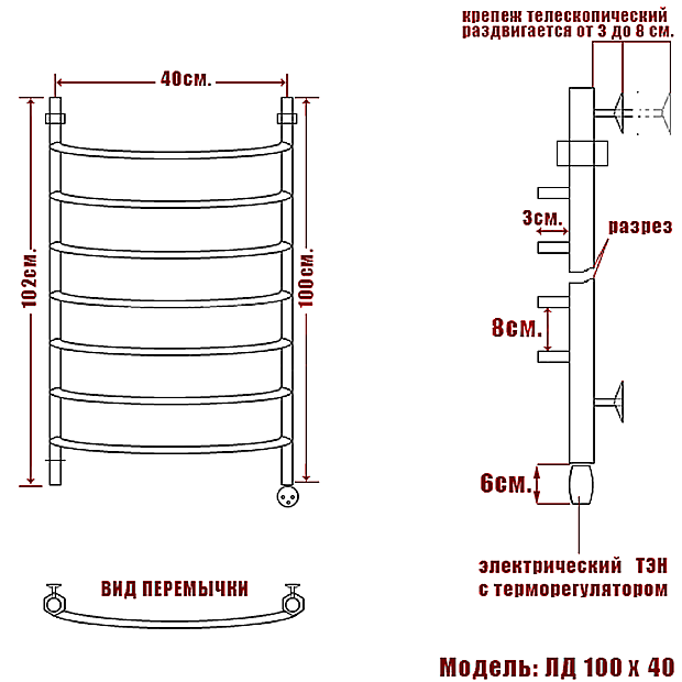 Полотенцесушитель Электрический Ника ARC 1000х430 хром (ЛД 100/40 прав)
