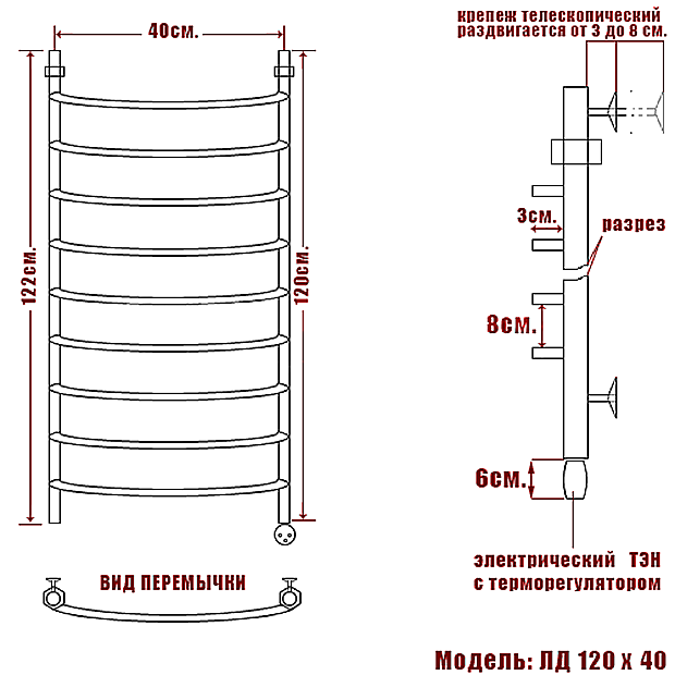 Полотенцесушитель Электрический Ника ARC 1200х430 хром (ЛД 120/40 прав)