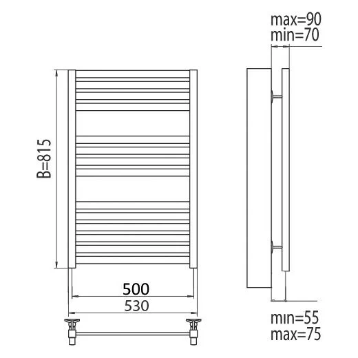 - Межосевое расстояние полотенцесушителя, мм: 500