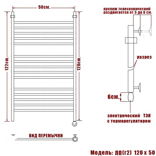 Полотенцесушитель Электрический Ника CLASSIC 1200х530 хром (ЛП Г2 120/50 прав)