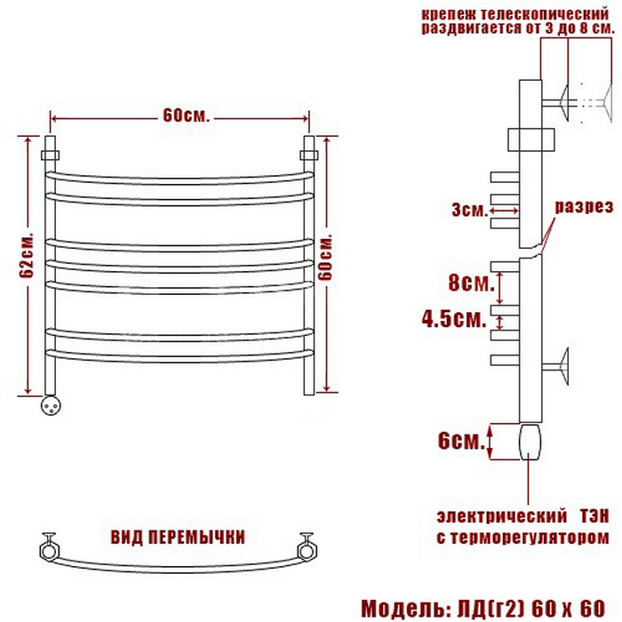 Полотенцесушитель Электрический Ника ARC 600х630 хром (ЛД Г2 ВП 60/60 прав)