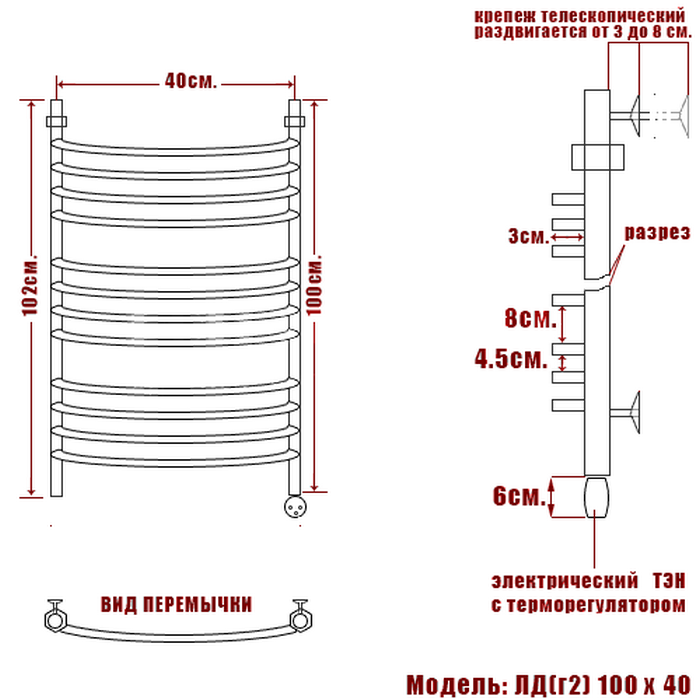 Полотенцесушитель Электрический Ника ARC 1000х430 хром (ЛД Г2 100/40 прав)