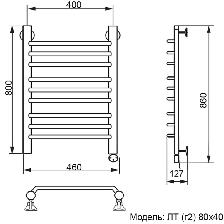 Полотенцесушитель Электрический Ника TRAPEZIUM 800х430 хром (ЛТ Г2 80/40 прав)