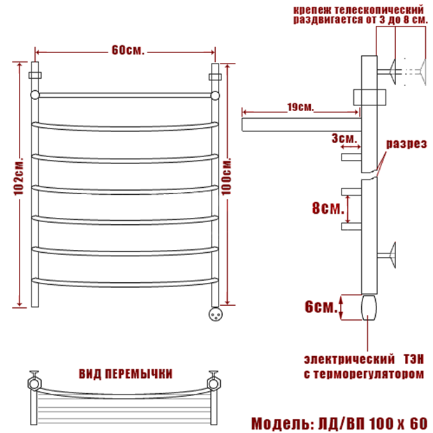 Полотенцесушитель Электрический Ника ARC 1000х630 хром (ЛД ВП 100/60 лев)