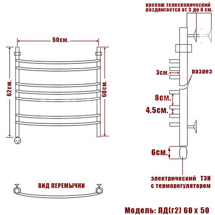 Полотенцесушитель Электрический Ника ARC 600х530 хром (ЛД Г2 60/50 прав)