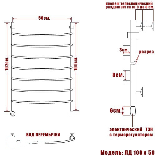 Полотенцесушитель Электрический Ника ARC 1000х530 хром (ЛД 100/50 лев)