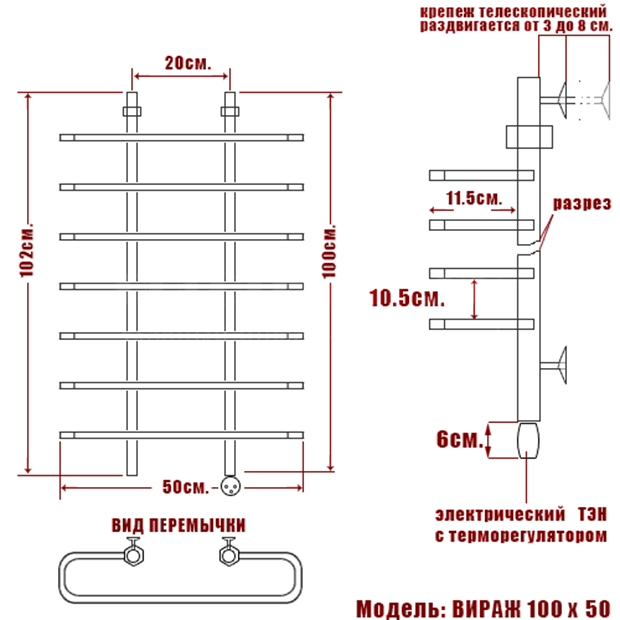 Полотенцесушитель Электрический Ника MIX 1000х530 хром (Вираж 100/50 прав)
