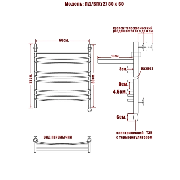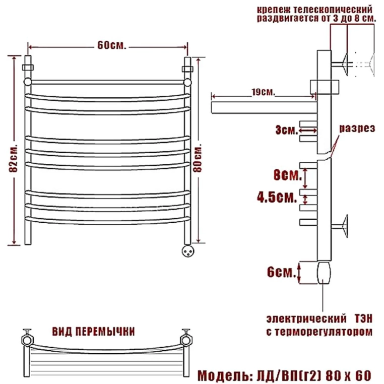 Полотенцесушитель Электрический Ника ARC 800х630 хром (ЛД Г2 ВП 80/60 прав)