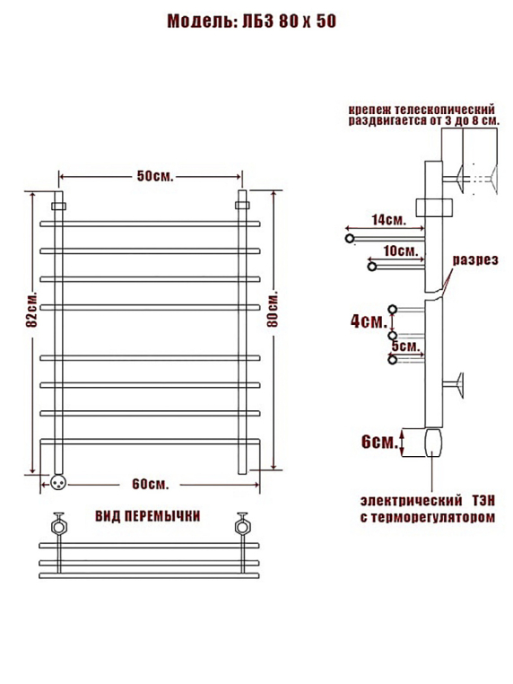 Полотенцесушитель Электрический Ника BAMBOO 800х530 хром (ЛБ 3 80/50 лев)