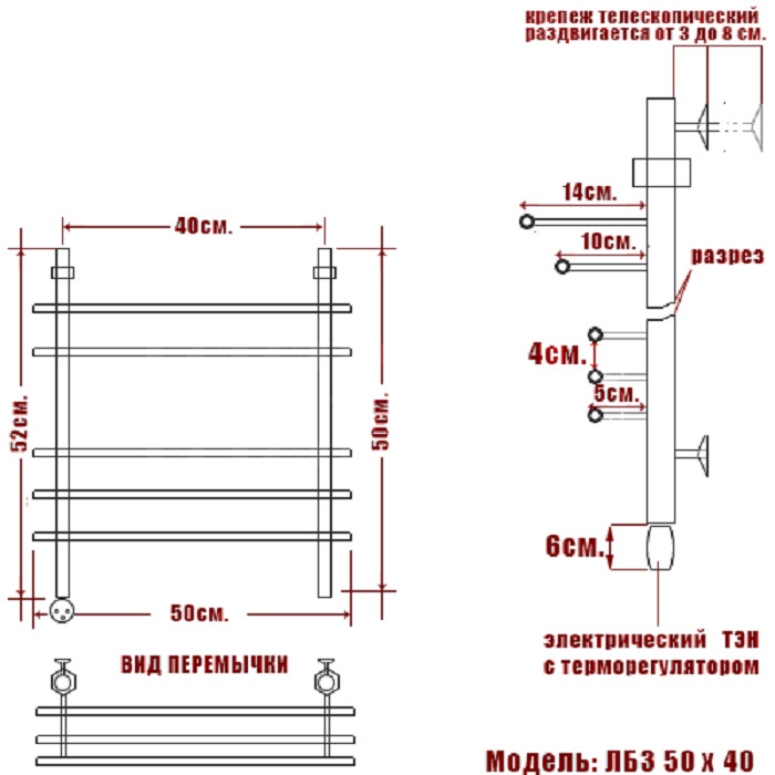 Полотенцесушитель Электрический Ника BAMBOO 500х430 хром (ЛБ 3 50/40 лев)