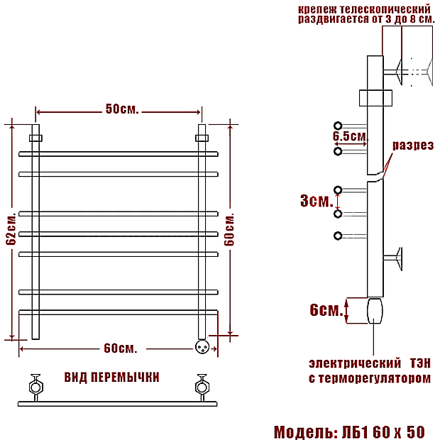 Полотенцесушитель Электрический Ника BAMBOO 600х530 хром (ЛБ 1 60/50 прав)