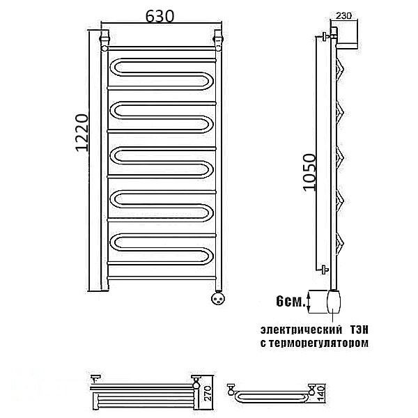 Полотенцесушитель Электрический Ника CURVE 1200х630 хром (ЛЗ ВП 120/60 прав)