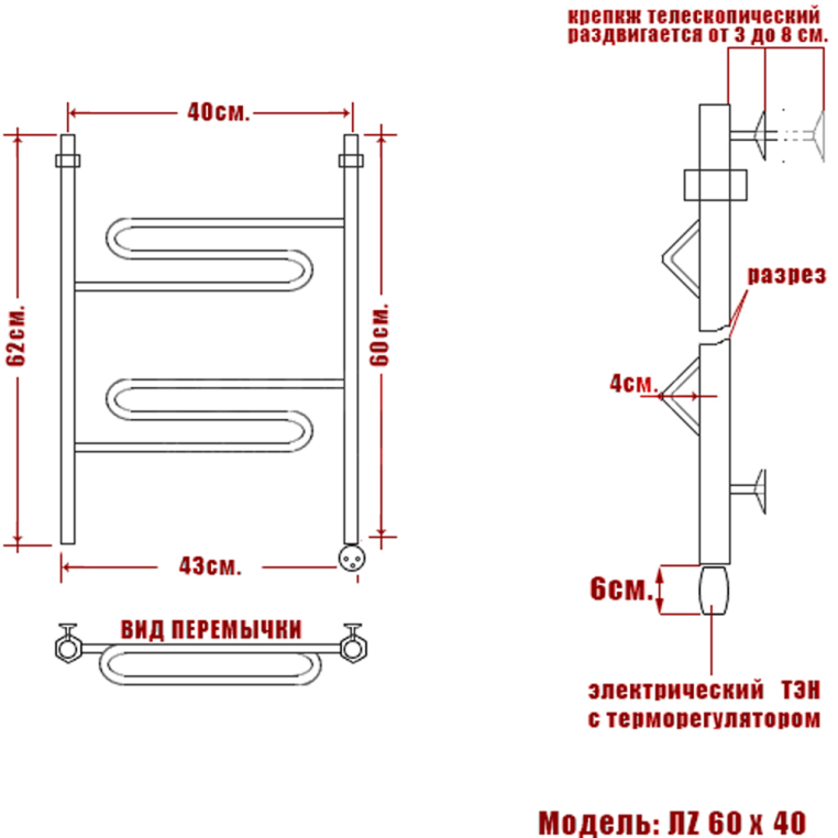 Полотенцесушитель Электрический Ника CURVE 600х430 хром (ЛЗ 60/40 прав)