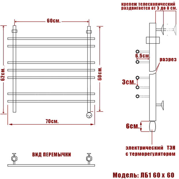 Полотенцесушитель Электрический Ника BAMBOO 600х630 хром (ЛБ 1 60/60 лев)