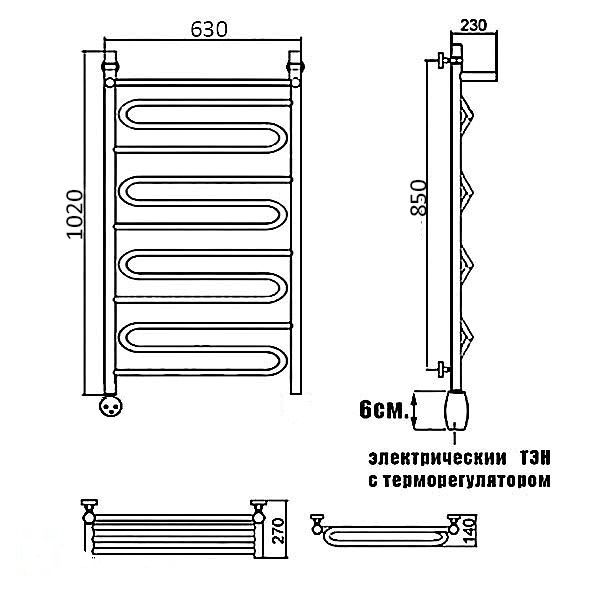 Полотенцесушитель Электрический Ника CURVE 1000х630 хром (ЛЗ ВП 100/60 лев)