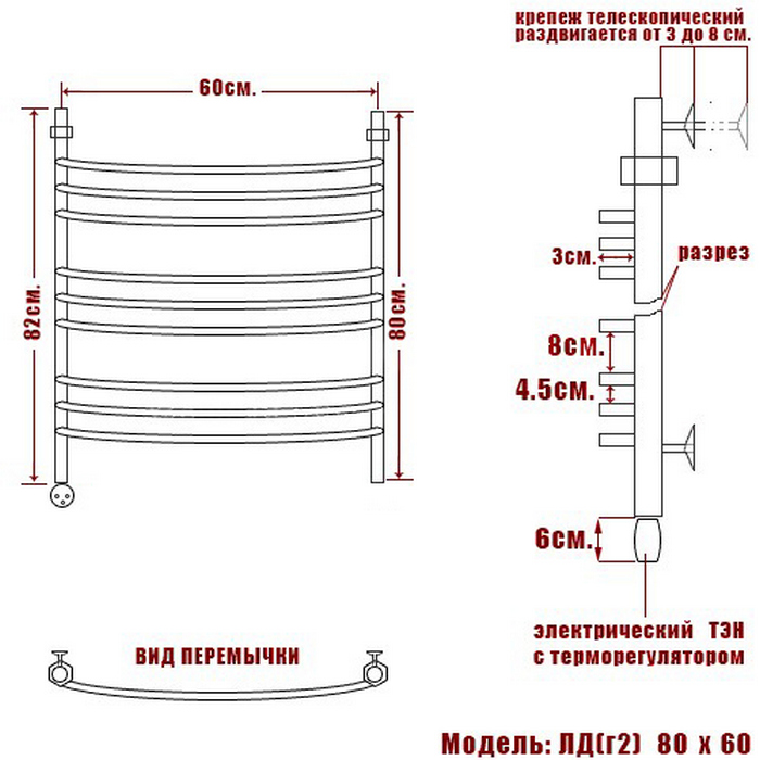 Полотенцесушитель Электрический Ника ARC 800х630 хром (ЛД Г2 80/60 лев)