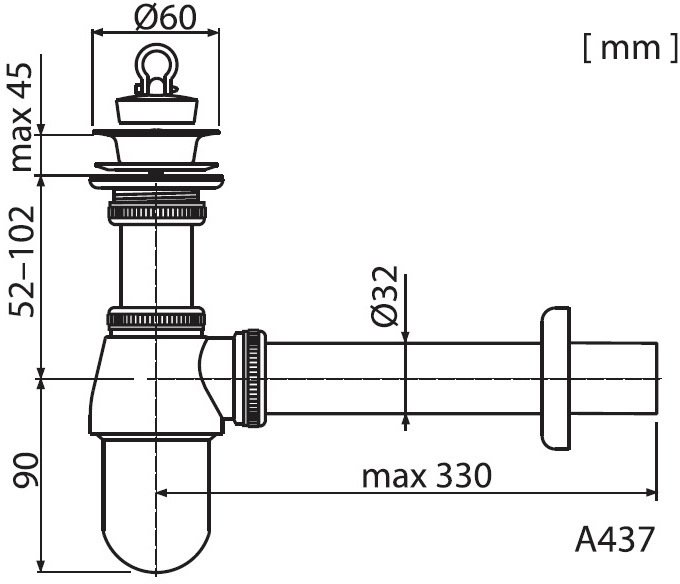 Комплект цельнометаллического сифона и сливного клапана раковины