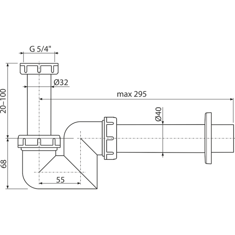 Сифон для умывальника и биде DN40 пластик AlcaPlast A45F-DN40