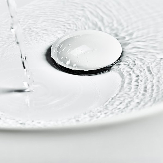 Фиксированный слив с белой керамической крышкой сохраняет чистый стиль умывальника. Он подходит для всех умывальников без перелива, особенно для умывальников на столешницу.