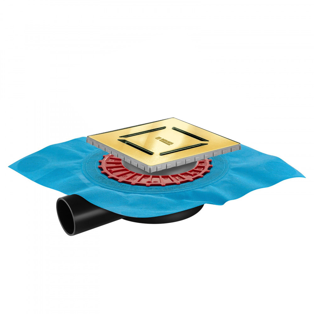 Трап BERGES водосток ZENTRUM Norma 150х150, золото глянец, выпуск D50 H65 боковой