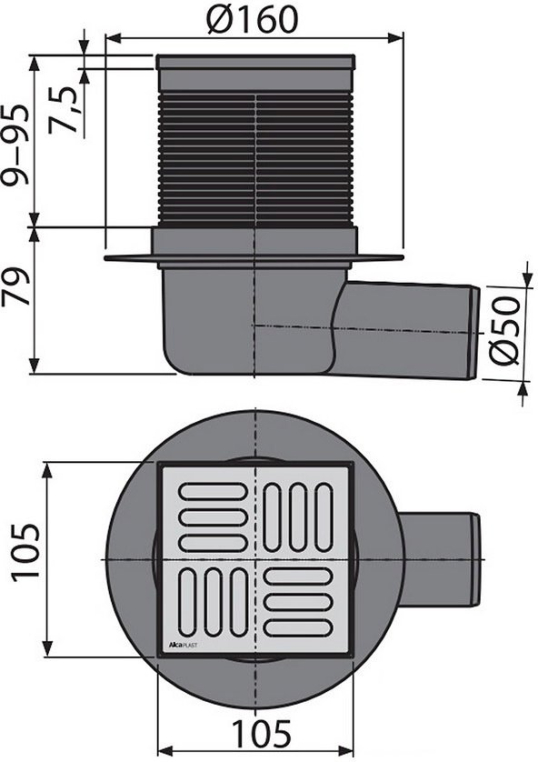 вручную легко чистящийся сифон, вплоть до сточной трубы