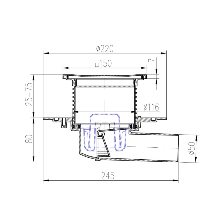 Компактный размер трапа – всего 150х150 мм, что позволяет оставить целостным дизайн пола.