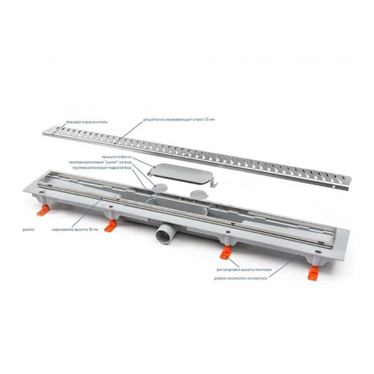 Комбинированный затвор (сухой + гидрозатвор) не пропускает запахи в помещение, надежно защищая вас от неприятных сюрпризов. Такая конструкция сифона в душевом лотке считается самой универсальной и надежной защитой от запахов и бактерий. Сифоны такой конструкции отличает двухуровневая защита: водяная пробка не пропускает запахи при постоянной эксплуатации, а воздушная поплавковая система является дополнительной преградой, при пересыхании водяной пробки.
