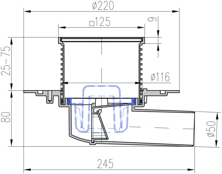 Компактный размер трапа – всего 125x125 мм, что позволяет оставить целостным дизайн пола.