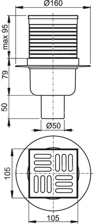 Сливной трап 105x105/50 AlcaPlast APV32
