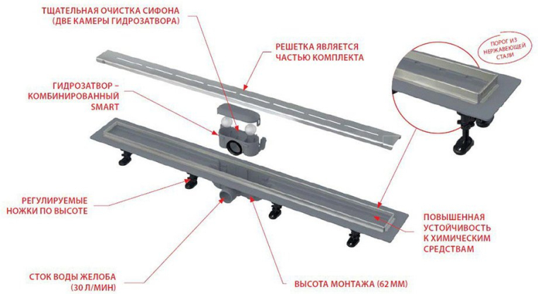 Сливные трапы из особопрочного пластика, который устойчив к морозам и химии