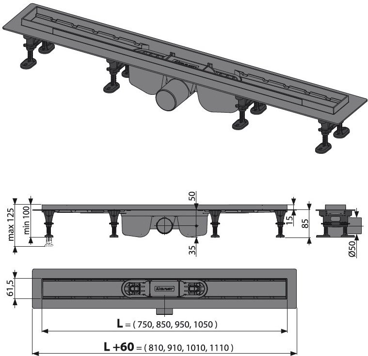 Душевой лоток AlcaPlast Optimal APZ12-850