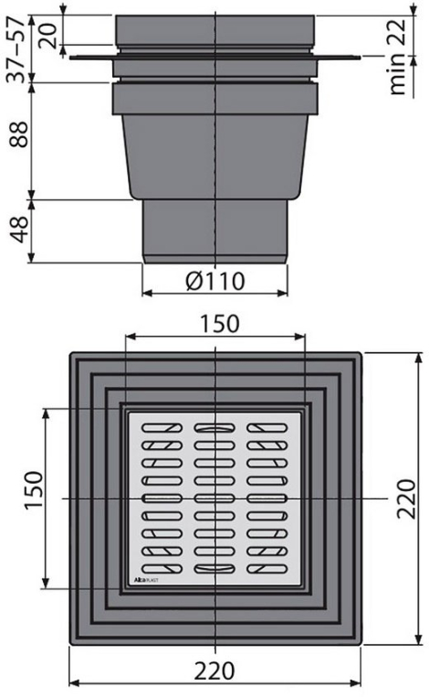 Сливной трап AlcaPlast 150x150/110 APV13