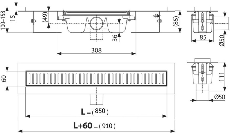 Вручную легко чистящийся сифон, вплоть до сточной трубы